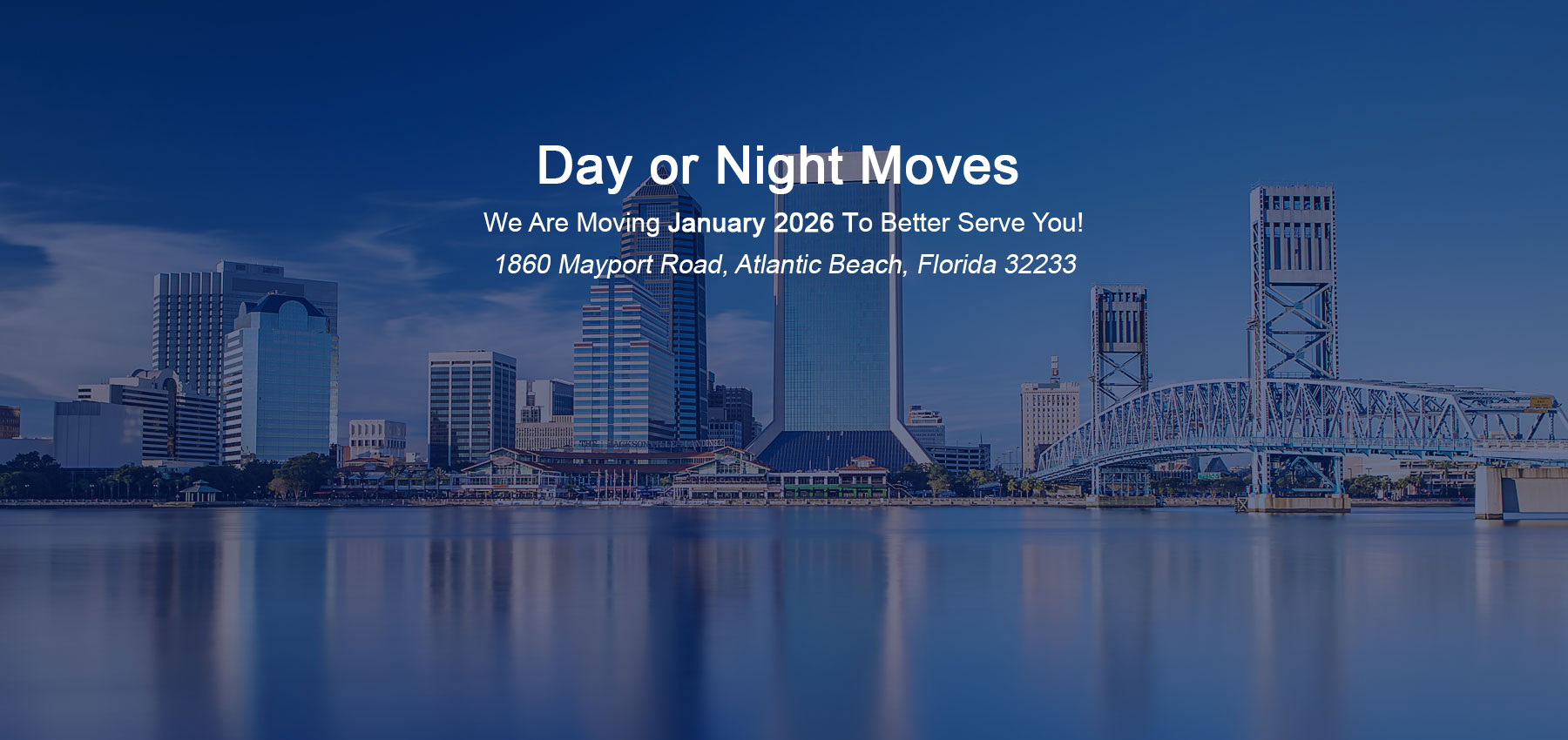 Call Day or Night Movers now to consult with an expert mover or schedule service. We're proud to help customers throughout Jacksonville, Baymeadows, Orange Park, St. Augustine, Jacksonville Beach, Atlantic Beach, Ponte Vedra, Palm Valley, Julington Creek and Yulee.
